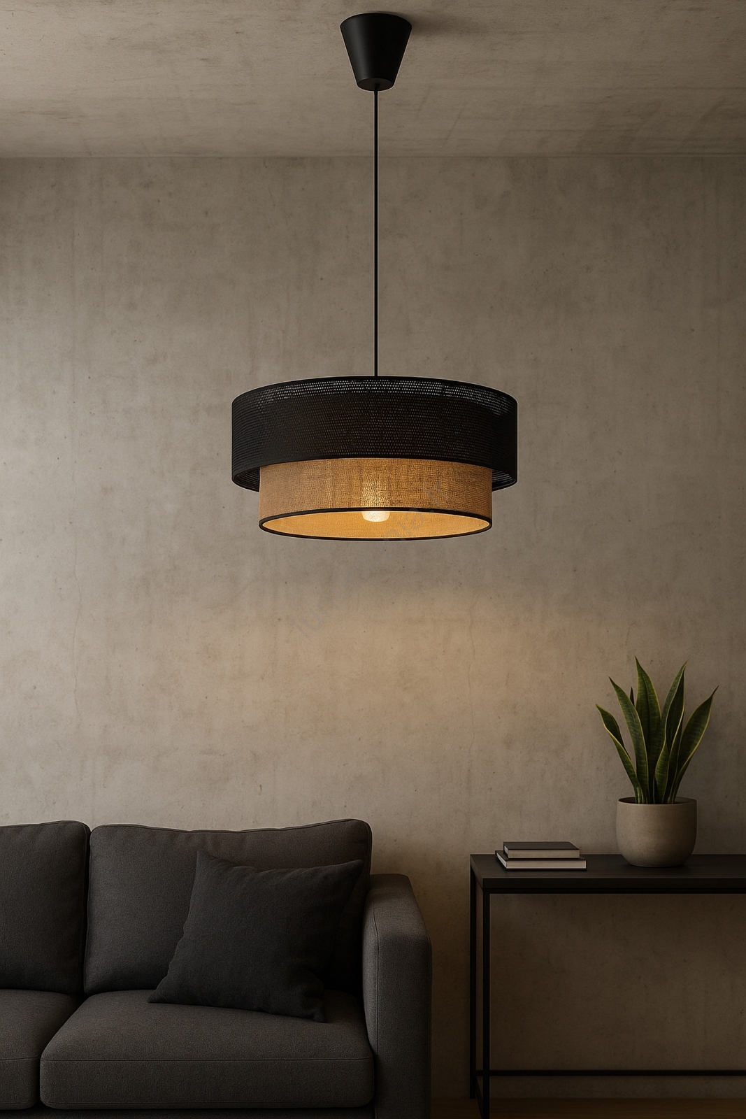 Suspension sur câble BORHO 1xE27/60W/230V Ø 40 cm noir/jute caractérise un design agréable et fonctionnel.  Une ampoule à culot E27 convient pour ce luminaire. Ici, vous pouvez acheter d'autres ampoules à des prix avantageux. Vous aurez un ajout intéressant dans votre intérieur.