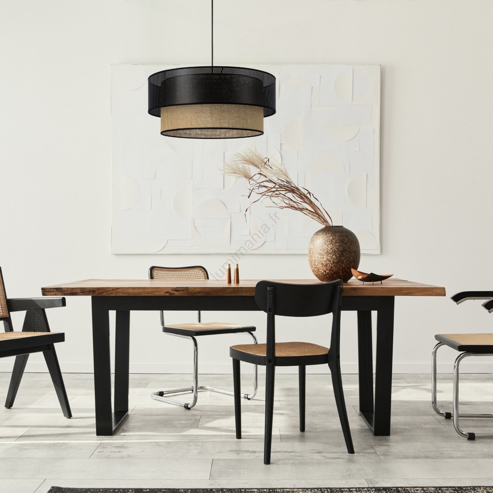 • Suspension sur câble BORHO 1xE27/60W/230V Ø 40 cm noir/jute