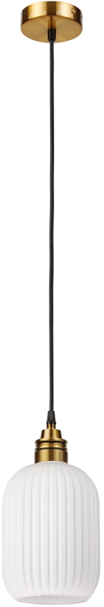 Suspension sur câble HECTOR 1xE27/15W/230V blanc/laiton Ø 14 cm caractérise un design agréable et fonctionnel.  Une ampoule à culot E27 convient pour ce luminaire. Ici, vous pouvez acheter d'autres ampoules à des prix avantageux. Vous aurez un ajout intéressant dans votre intérieur.