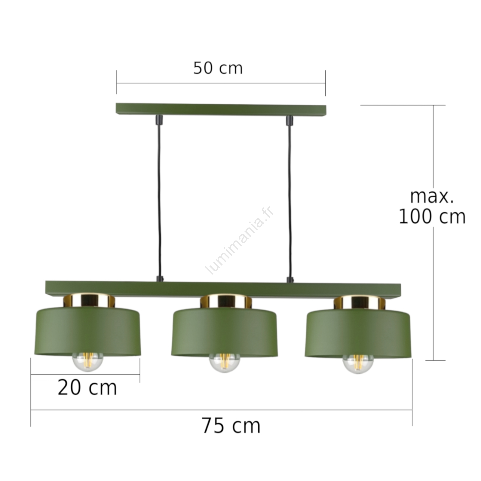 Suspension sur câble IGNIA 3xE27/60W/230V verte/dorée caractérise un design agréable et fonctionnel.  Une ampoule à culot E27 convient pour ce luminaire. Ici, vous pouvez acheter d'autres ampoules à des prix avantageux. Vous aurez un ajout intéressant dans votre intérieur.