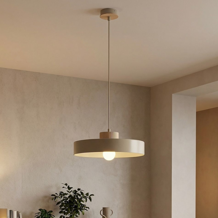 Suspension sur câble KIVI 1xE27/15W/230V beige caractérise un design agréable et fonctionnel.  Une ampoule à culot E27 convient pour ce luminaire. Ici, vous pouvez acheter d'autres ampoules à des prix avantageux. Vous aurez un ajout intéressant dans votre intérieur.