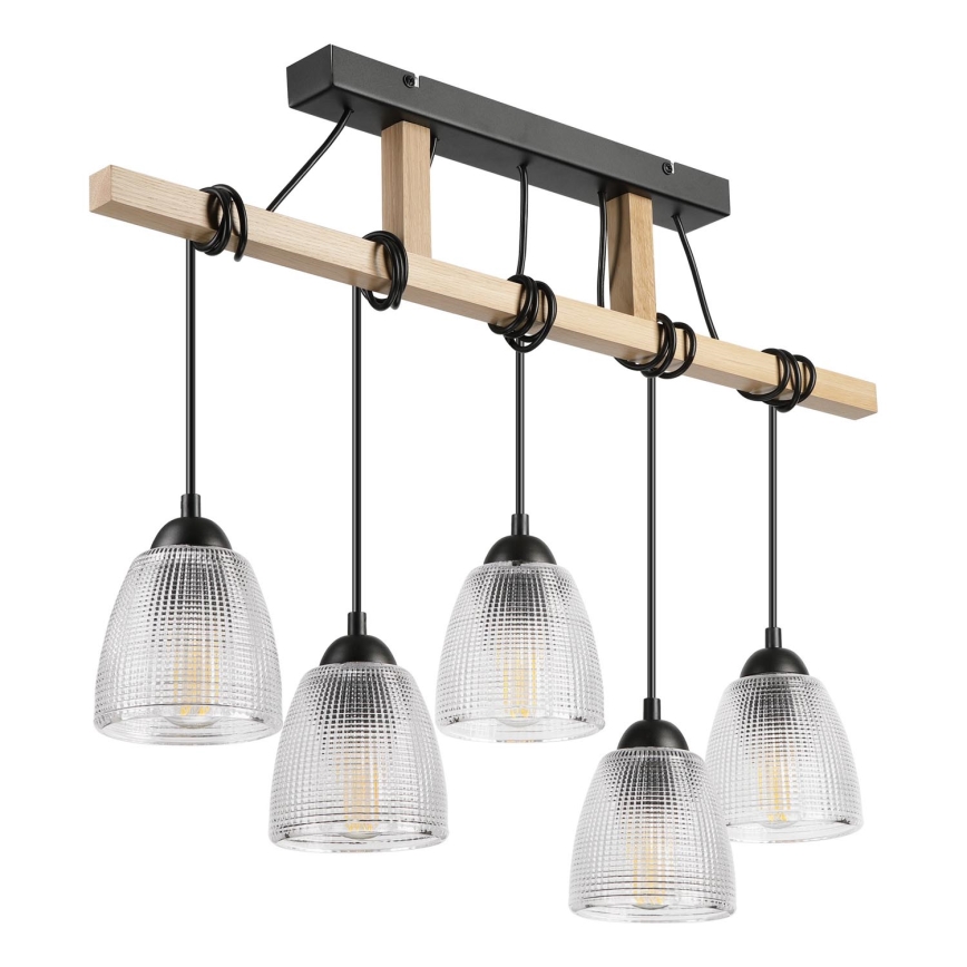 Suspension sur câble LEANDRA 5xE27/15W/230V chêne/noir