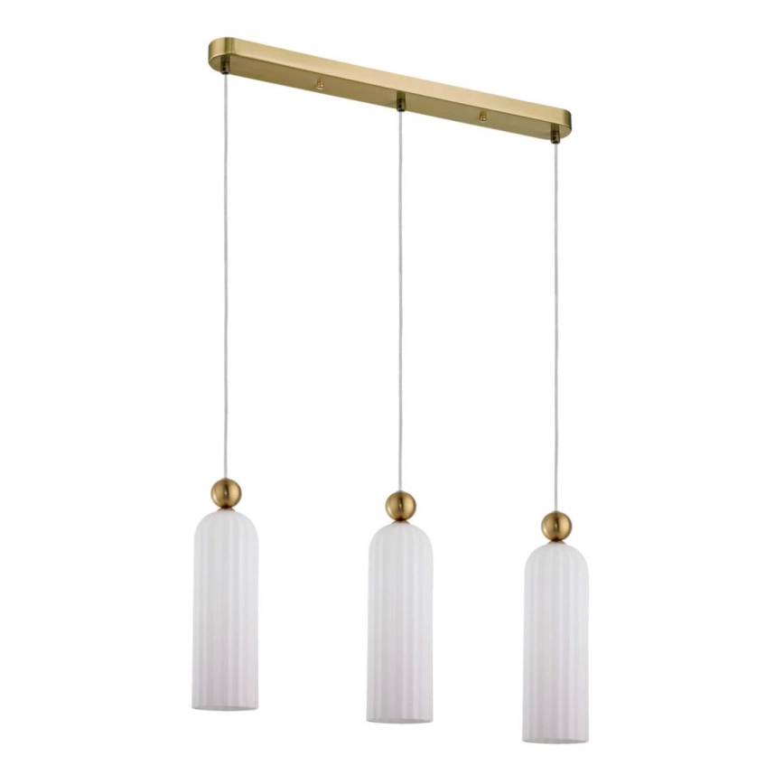 Suspension sur câble PIEGA 3xE14/40W/230V laiton/blanc caractérise un design agréable et fonctionnel.  Une ampoule à culot E14 convient pour ce luminaire. Ici, vous pouvez acheter d'autres ampoules à des prix avantageux. Vous aurez un ajout intéressant dans votre intérieur.