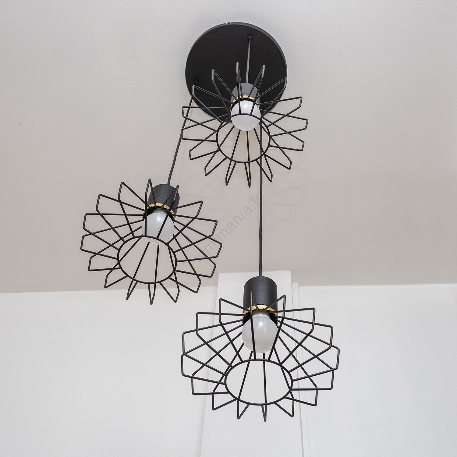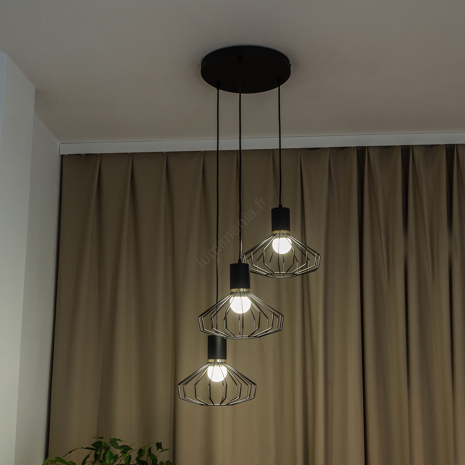Suspension sur câble SOLANO 3xE27/15W/230V noir/doré caractérise un design agréable et fonctionnel.  Une ampoule à culot E27 convient pour ce luminaire. Ici, vous pouvez acheter d'autres ampoules à des prix avantageux. Vous aurez un ajout intéressant dans votre intérieur.
