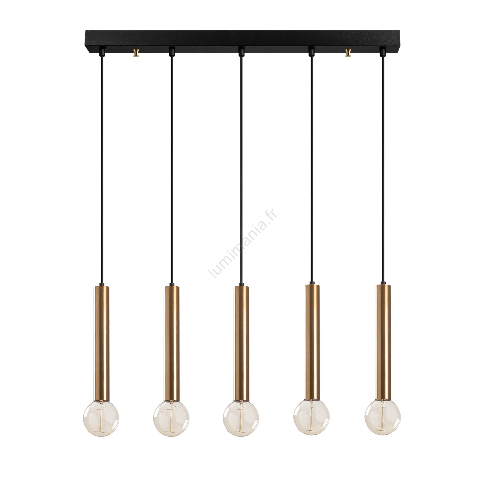 Suspension sur câble TEMPO 5xE27/40W/230V dorée caractérise un design agréable et fonctionnel.  Une ampoule à culot E27 convient pour ce luminaire. Ici, vous pouvez acheter d'autres ampoules à des prix avantageux. Vous aurez un ajout intéressant dans votre intérieur.