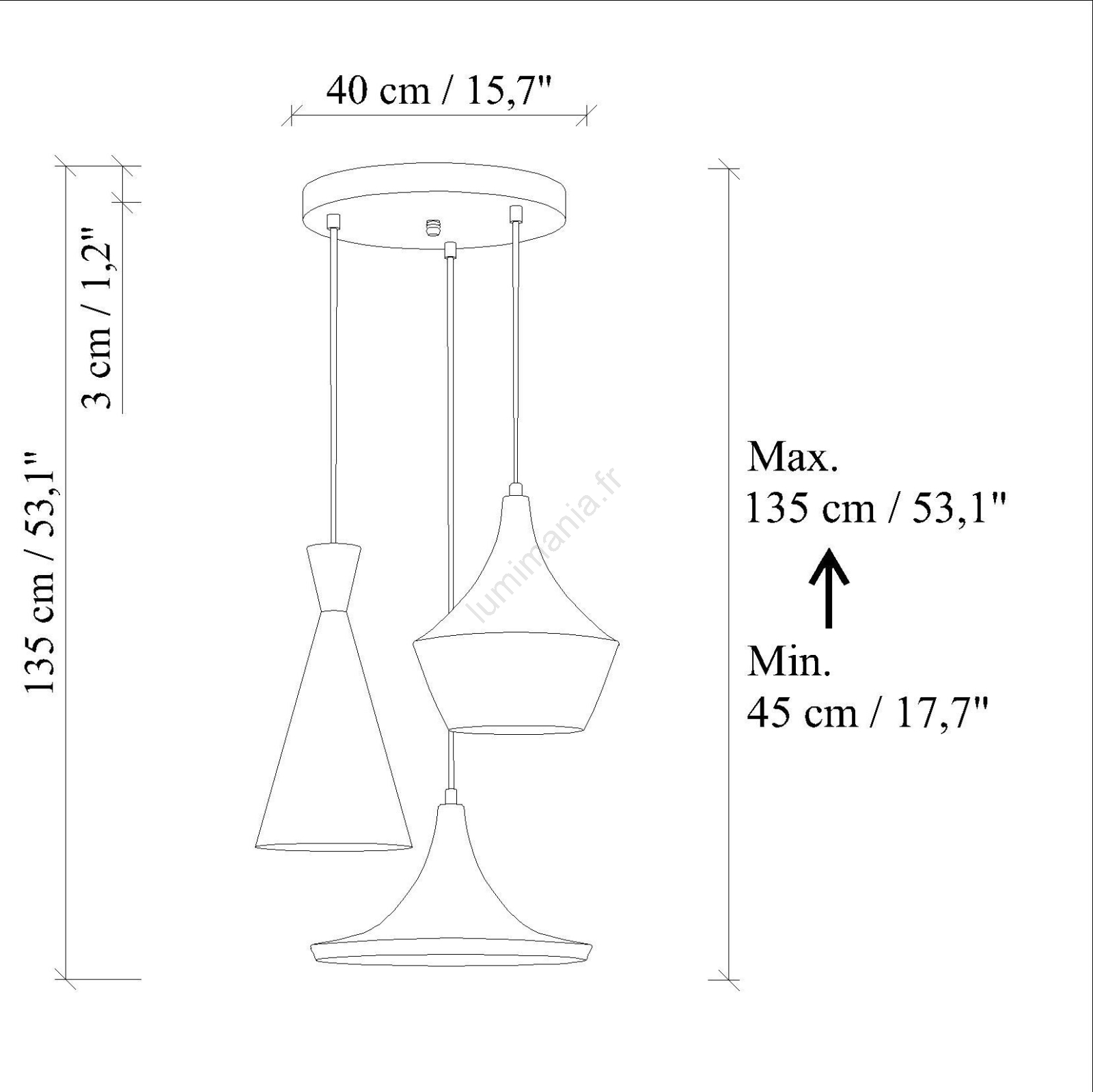 Suspension sur câble TOM 3xE27/40W/230V bleu caractérise un design agréable et fonctionnel.  Une ampoule à culot E27 convient pour ce luminaire. Ici, vous pouvez acheter d'autres ampoules à des prix avantageux. Vous aurez un ajout intéressant dans votre intérieur.