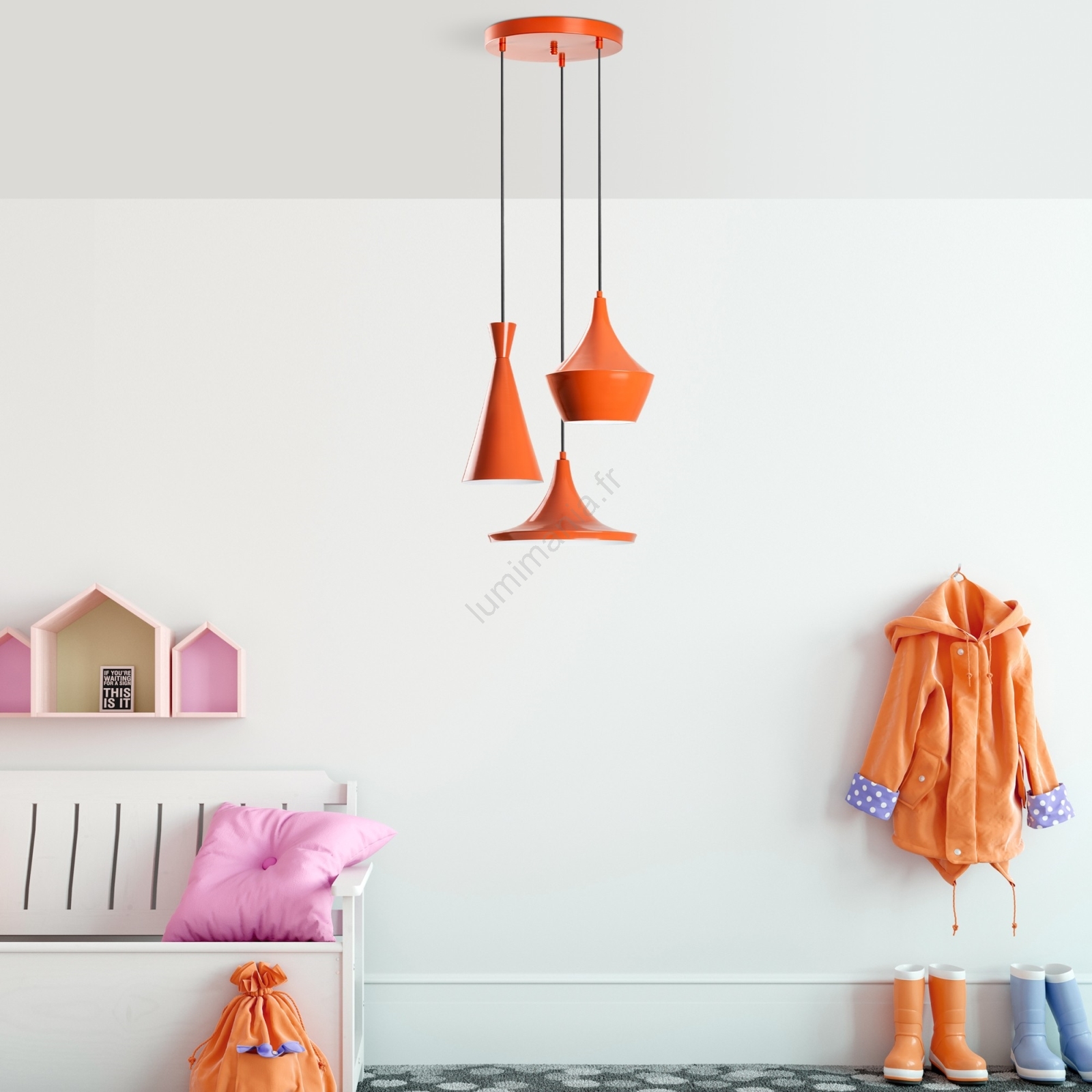 Suspension sur câble TOM 3xE27/40W/230V orange caractérise un design agréable et fonctionnel.  Une ampoule à culot E27 convient pour ce luminaire. Ici, vous pouvez acheter d'autres ampoules à des prix avantageux. Vous aurez un ajout intéressant dans votre intérieur.