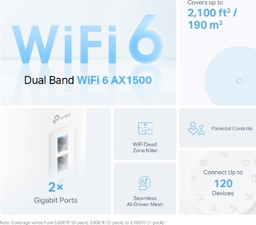 • Couverture sans faille avec un signal plus puissant : Assurez une couverture complète du domicile grâce à un signal Wi-Fi 6 plus net et plus puissant.