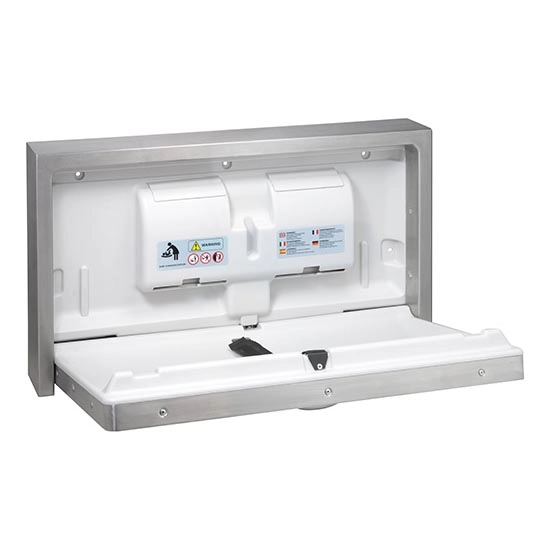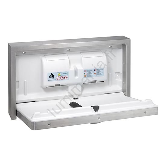 • Table à langer murale de dimensions 90 x 52 cm, idéale pour les espaces publics.