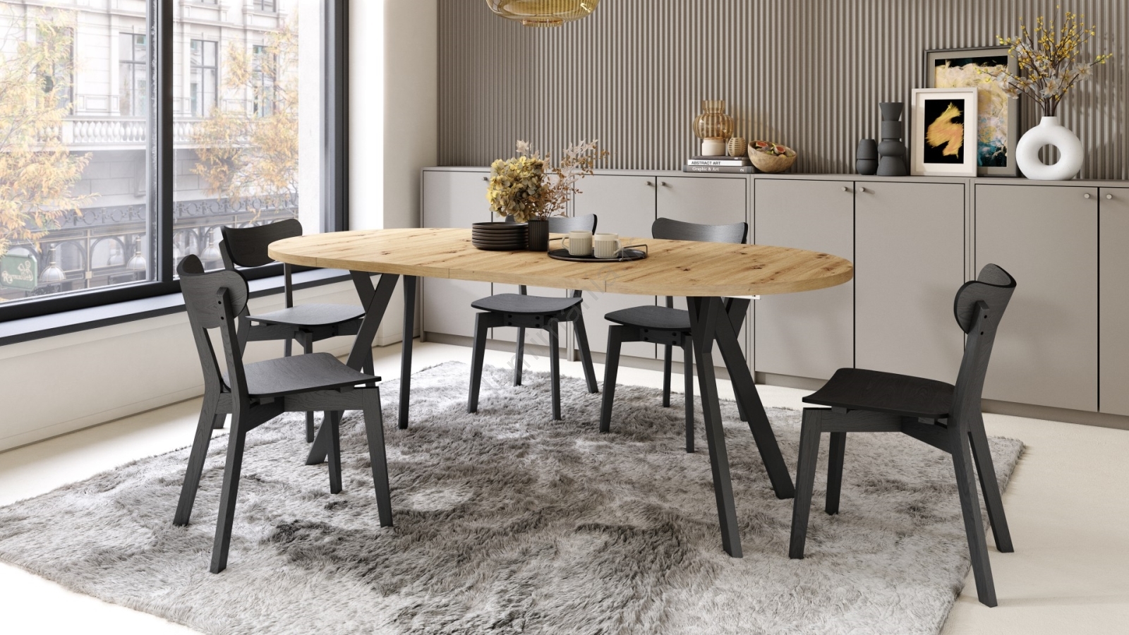 • Table à manger extensible ARTUR chêne/noir