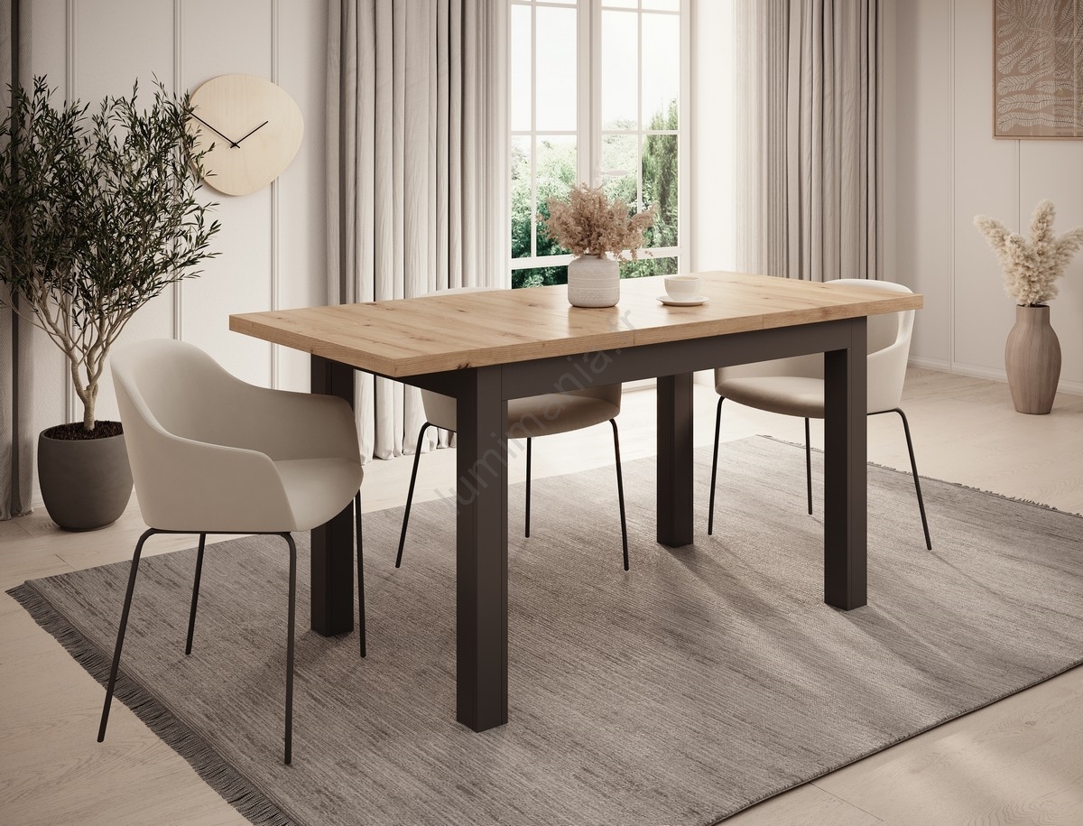 Table de salle à manger extensible DOO chêne artisanal/noir