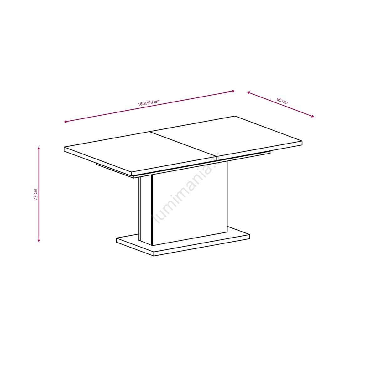 • Longueur de la table déployée : 200 cm.