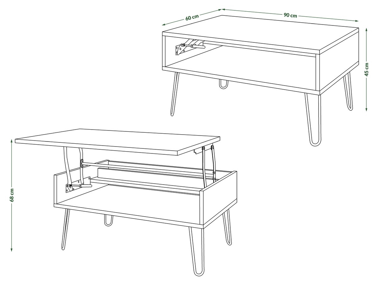 • Table basse avec plateau relevable et étagère HALIJA chêne craft/noir