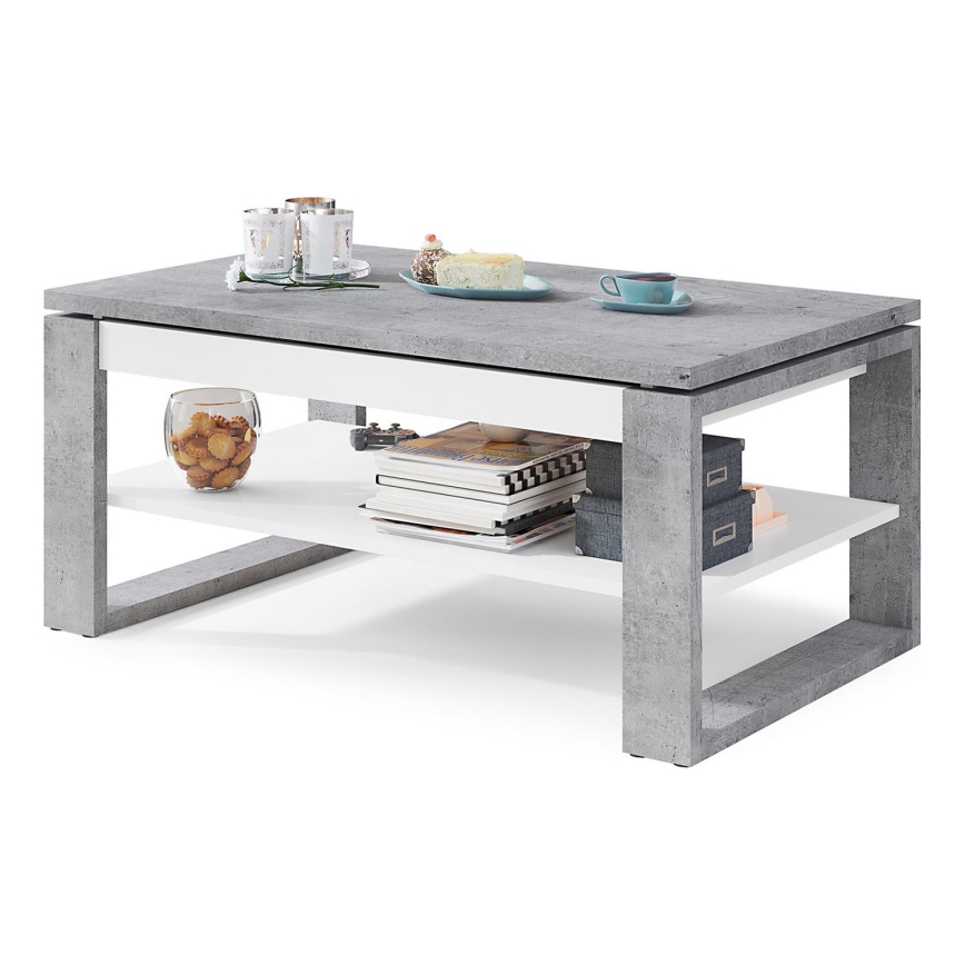 Table basse avec plateau relevable et étagère NEA, gris béton/blanc