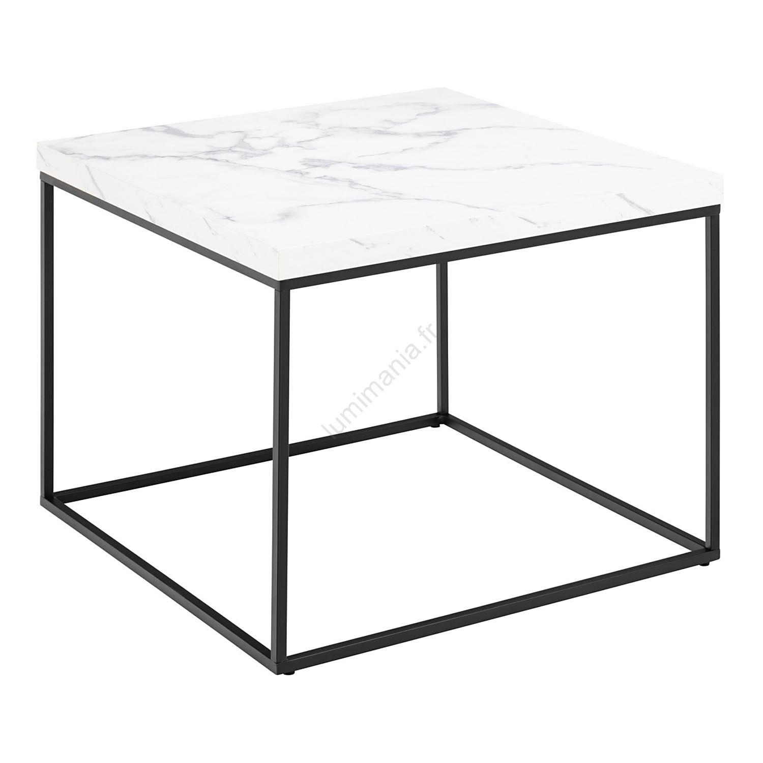 • Plateau en marbre blanc de Carrare, revêtement mélaminé texturé, base en acier peint par poudrage noir mat et texturé.