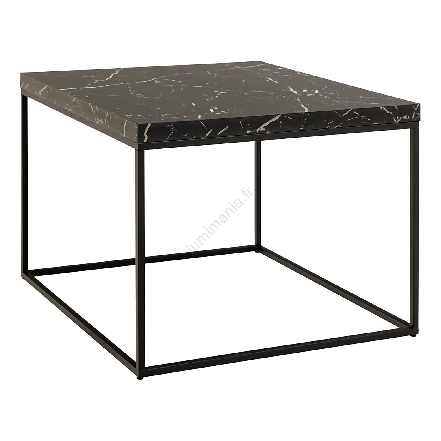 • Plateau en marbre noir Marquina, mélamine structurée, base en acier peint par poudrage noir mat et texturé.