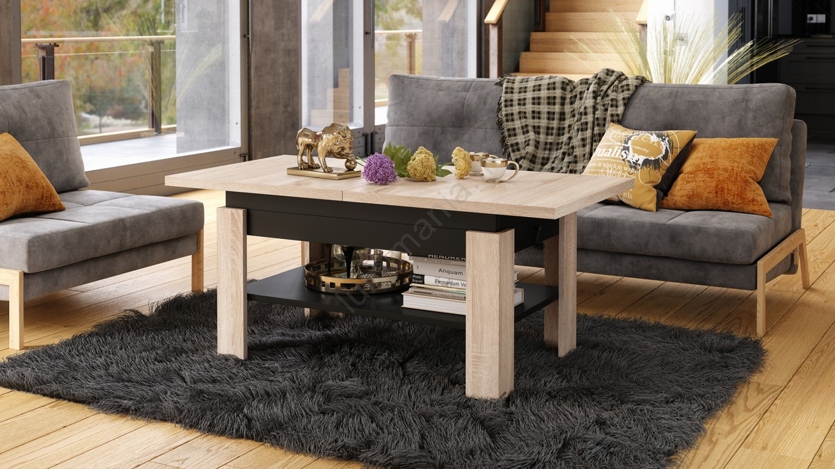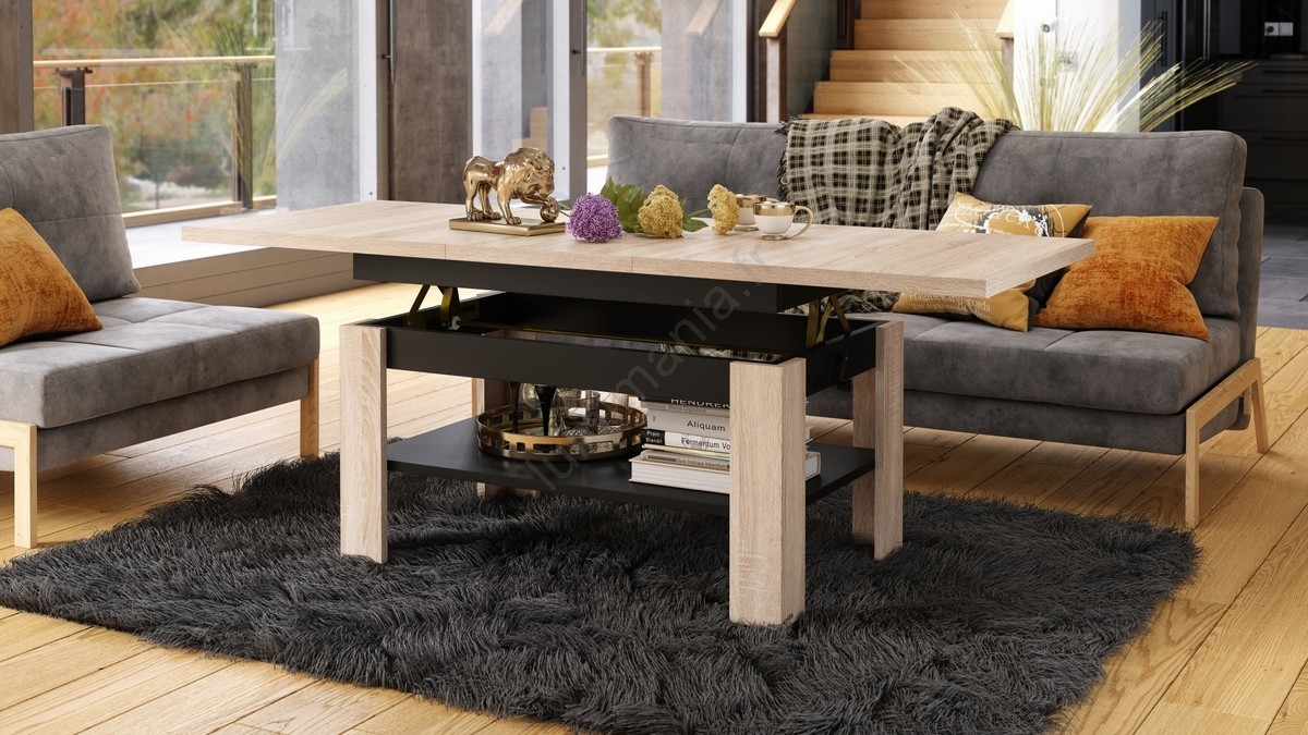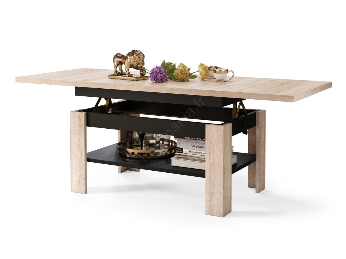 • Table basse extensible avec plateau relevable ROY 130/170x65 cm chêne sonoma/noir