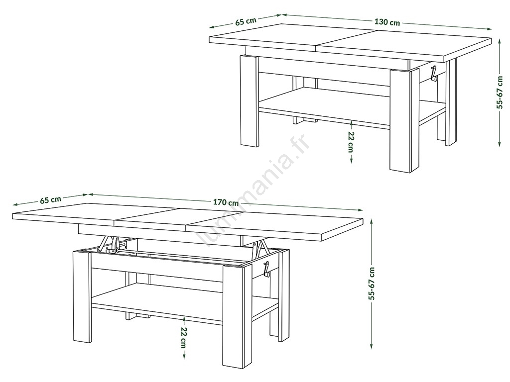• Le plateau peut être relevé jusqu'à une hauteur de 67 cm.