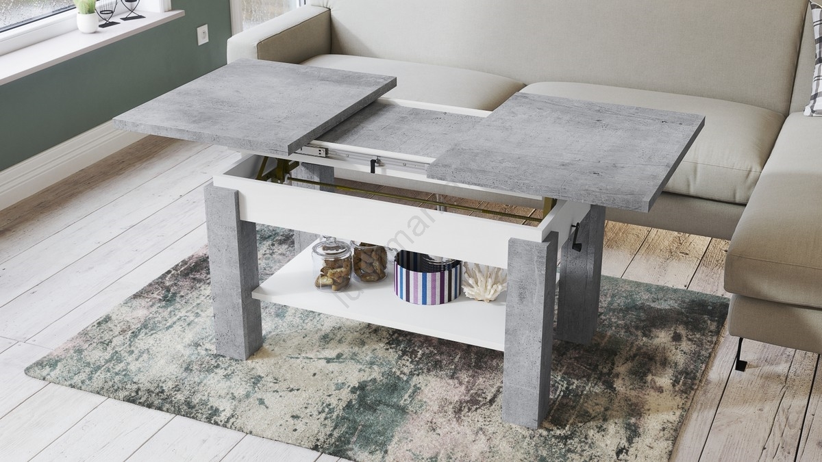 • Table basse extensible/à manger avec étagère ADONIS chêne sonoma/blanc
