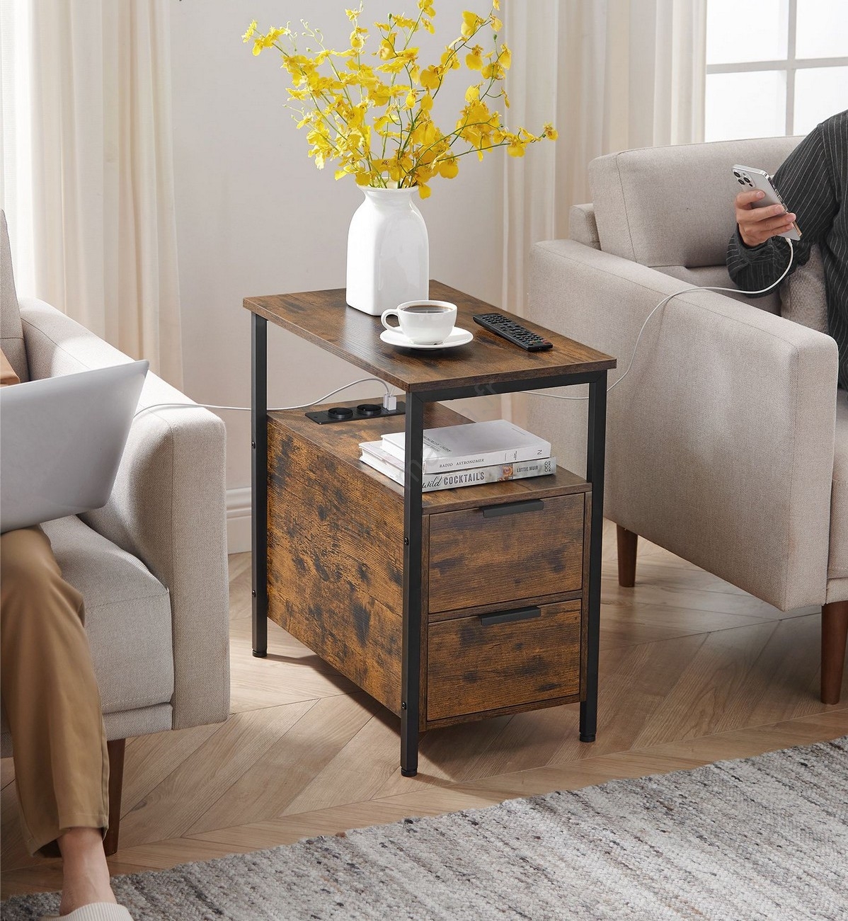 Table d'appoint ROD avec tiroirs intégrés et ports USB, marron/noir