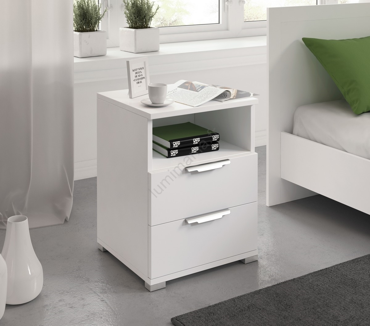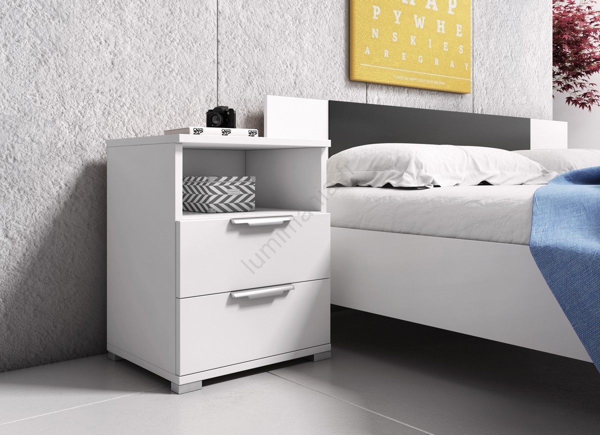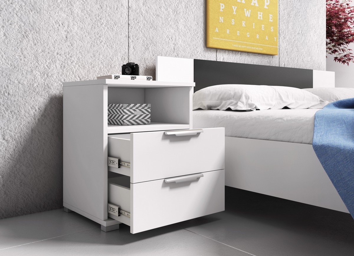 • Il est doté de deux tiroirs : le tiroir inférieur avec poignée et le tiroir supérieur sans poignée, pour un effet minimaliste et épuré.