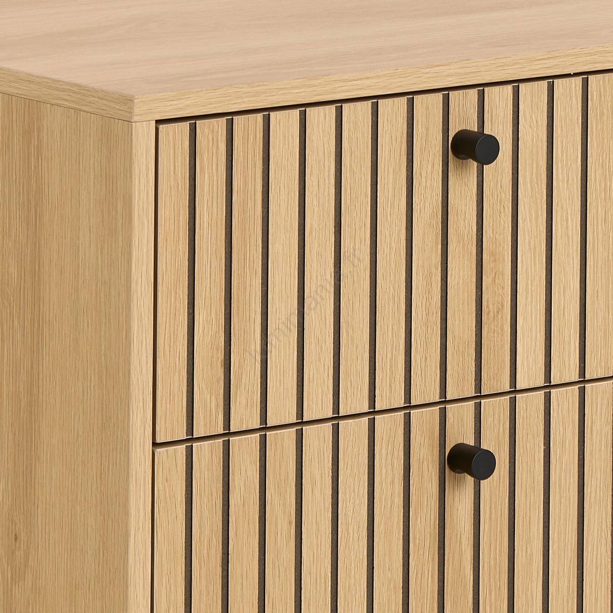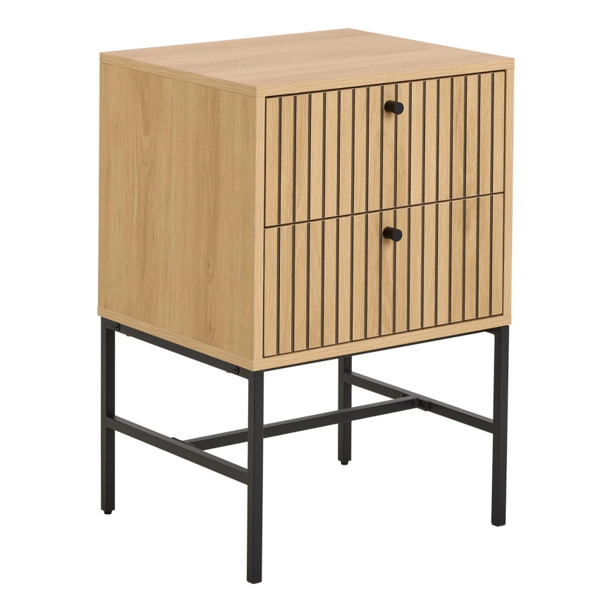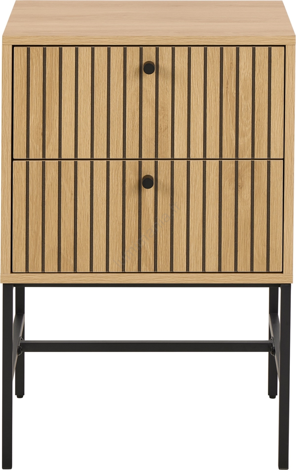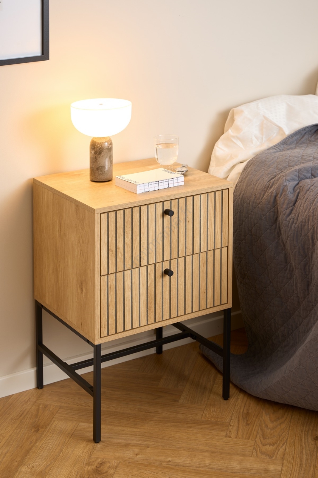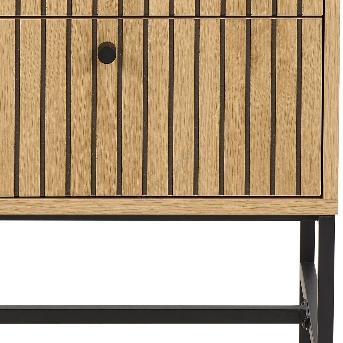 • Ce chevet effet chêne avec une façade à lames apportera style et praticité à votre intérieur.