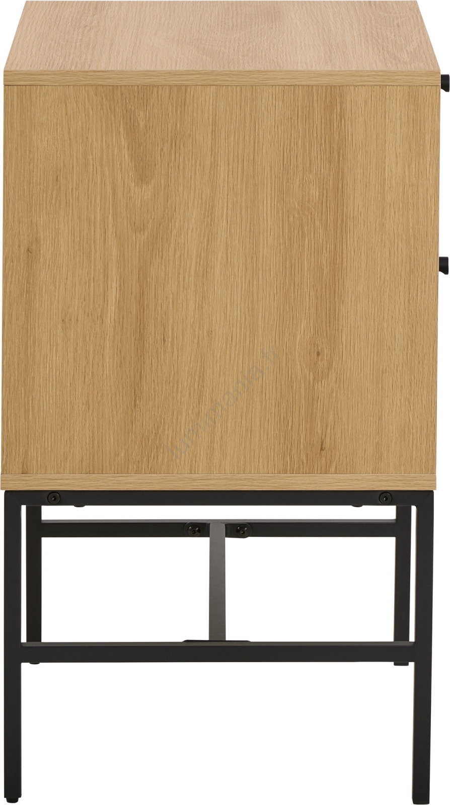 • Cadre, plateau et 2 tiroirs en mélamine craft à surface texturée, base en acier peint par poudrage noir mat.
