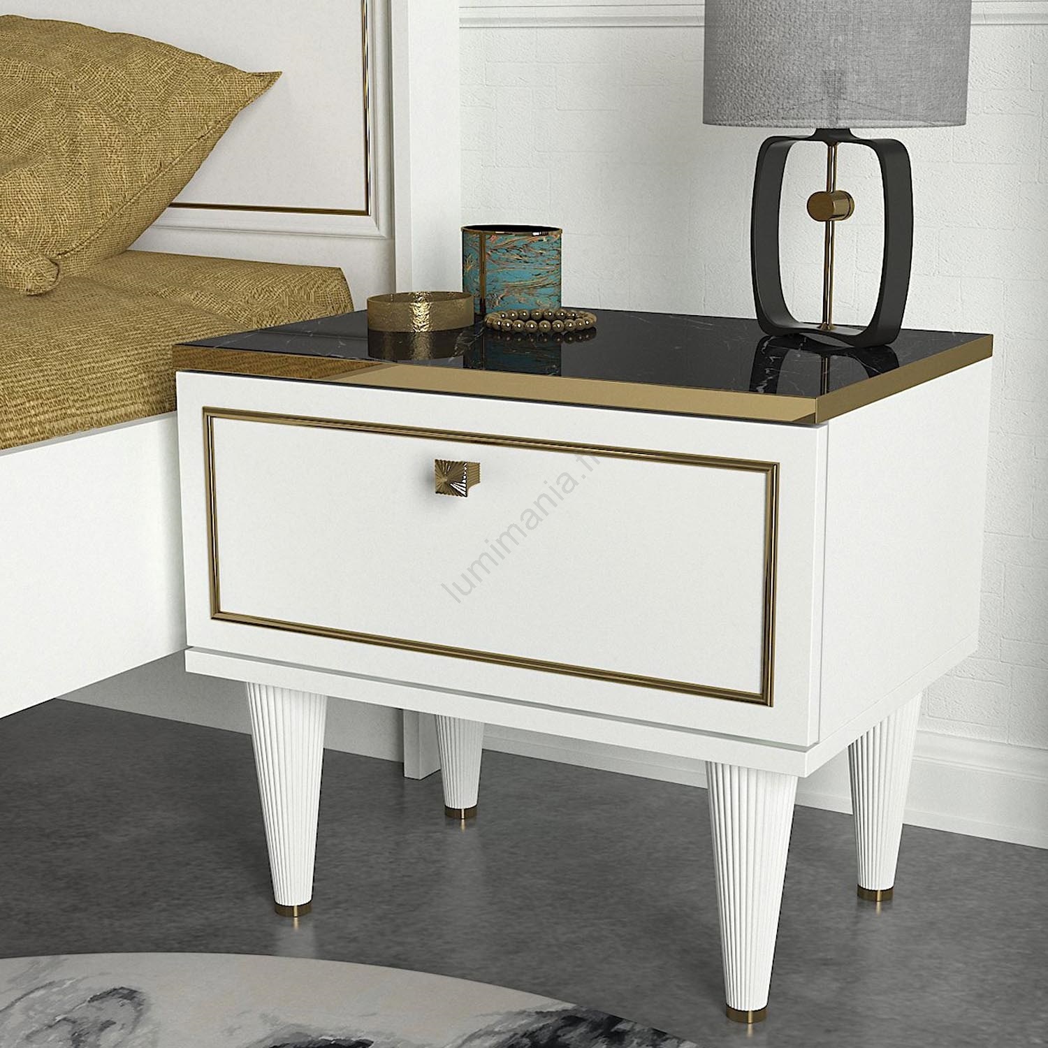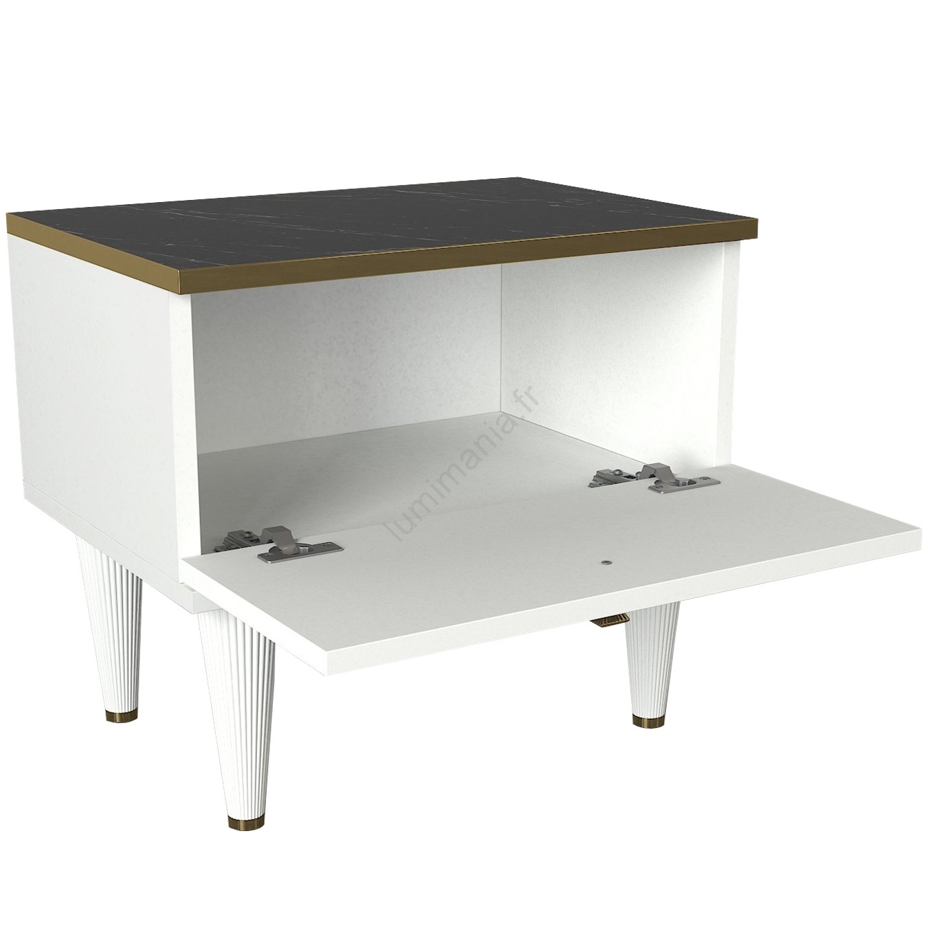 Table de nuit RAVENNA 47,2x50 cm blanche/noire/dorée