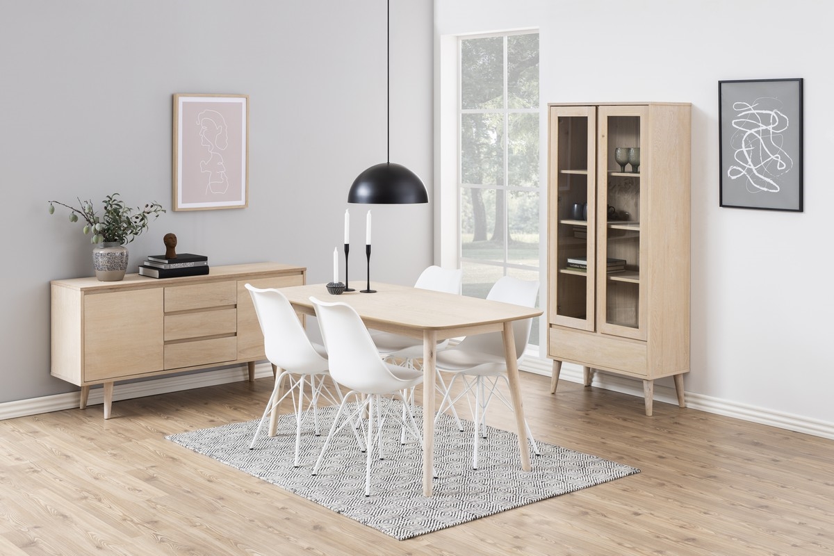 • La surface en chêne huilé et en placage de chêne renforce l'atmosphère et crée un environnement accueillant pour les occasions quotidiennes et festives.
