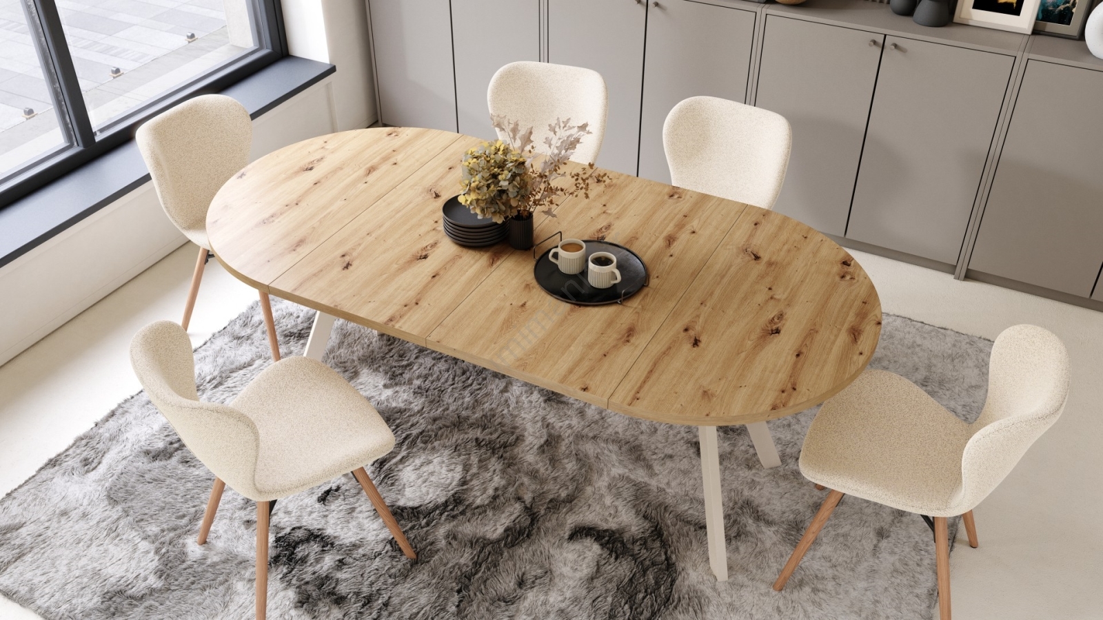 Table de salle à manger extensible ARTUR chêne artisan/beige