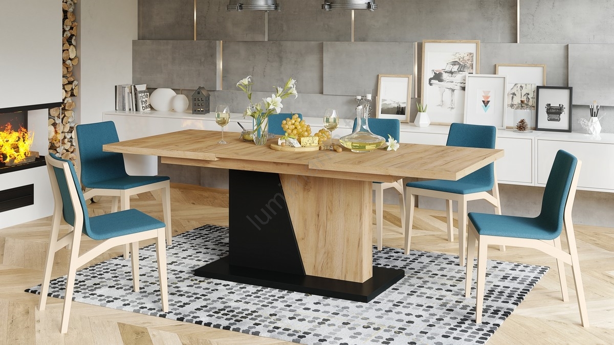 Table à manger extensible NINO chêne craft/noir