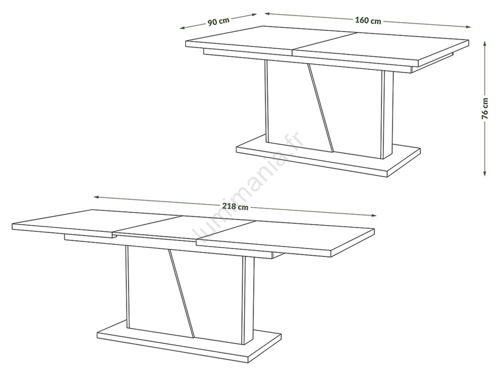 • Grâce à une rallonge de 58 cm, son plateau peut s'allonger jusqu'à 218 cm (aidée par des glissières synchronisées de qualité).