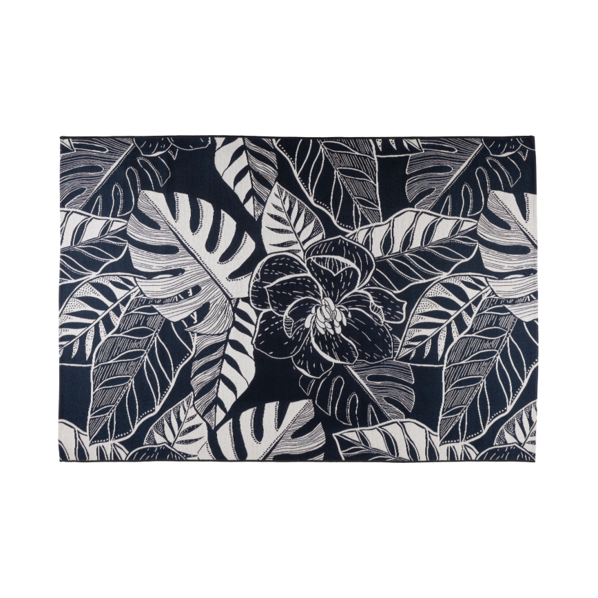Tapis d'extérieur JUNGLE 160x220 cm, noir/blanc, motif feuillage