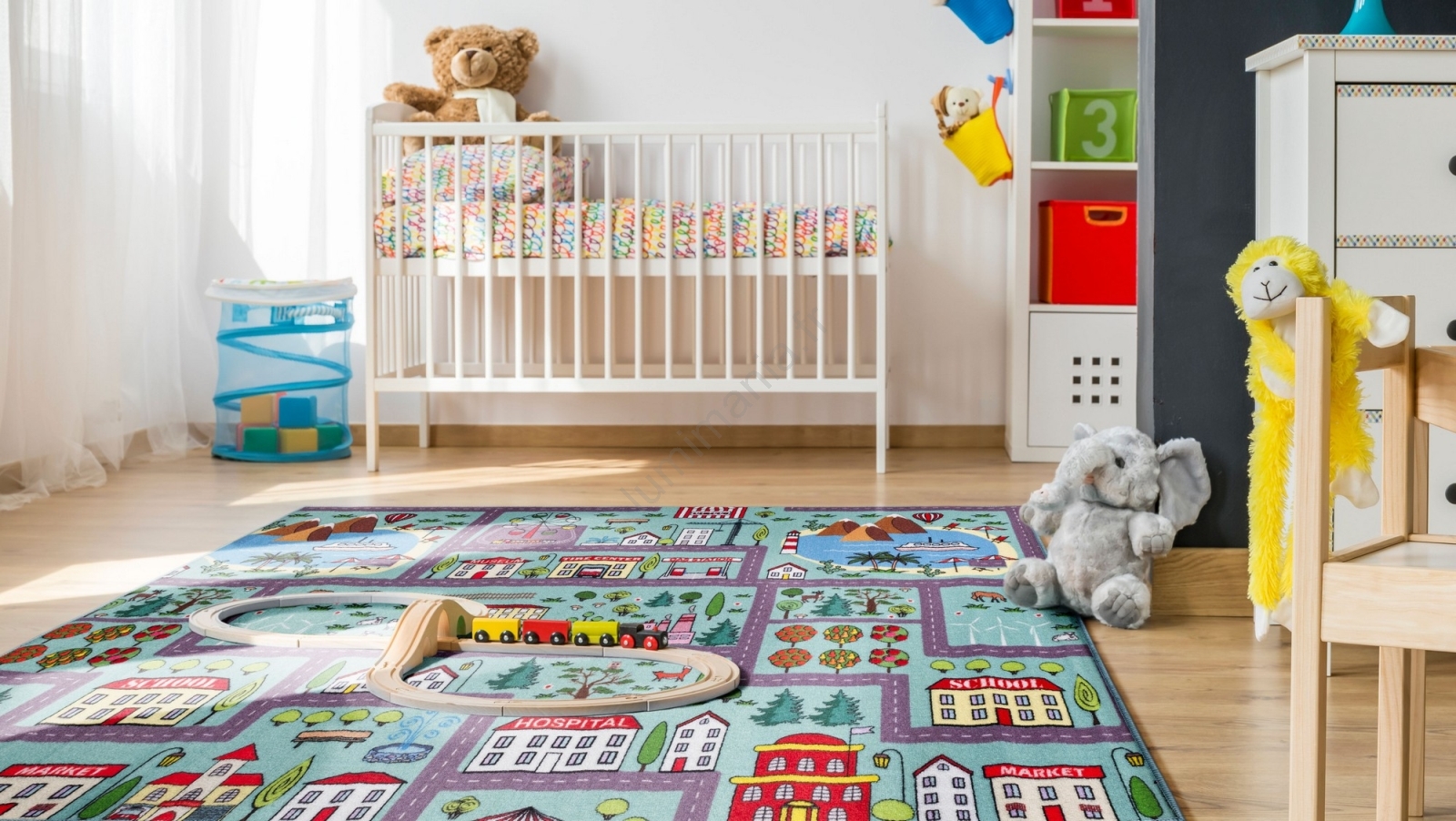 Tapis pour enfants STELLA STREETS 80x100 cm turquoise/ville