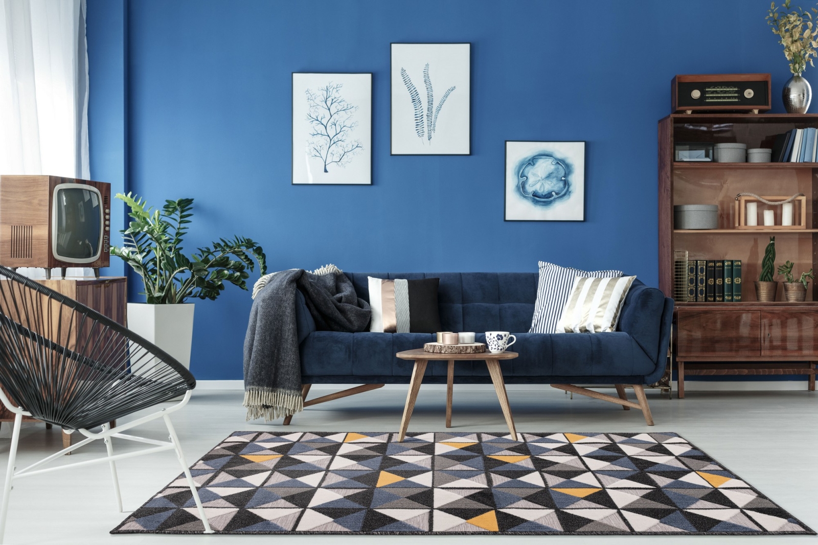 • Le velours présente un motif géométrique moderne et des hauteurs de poils variées, conférant au tapis un effet 3D.
