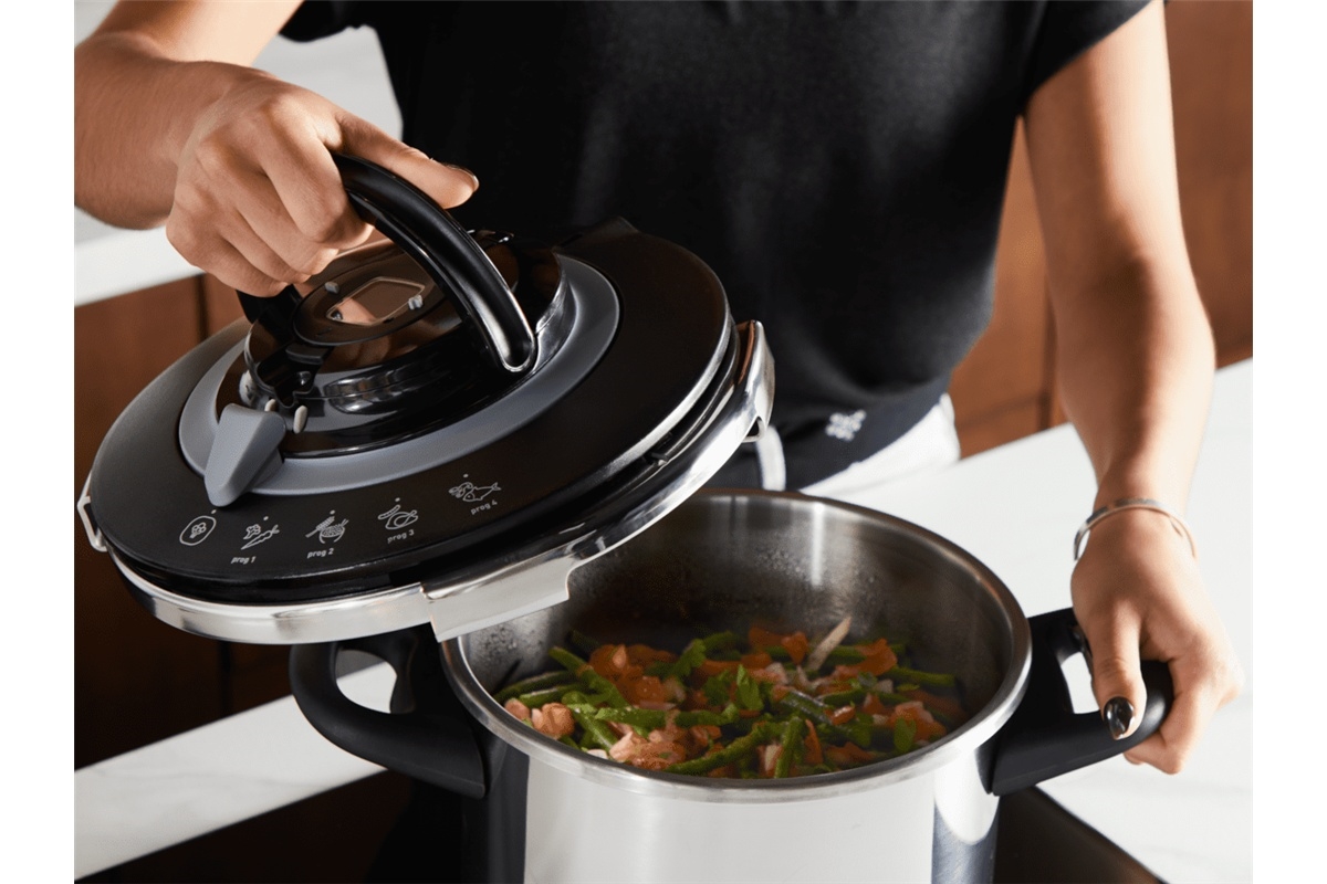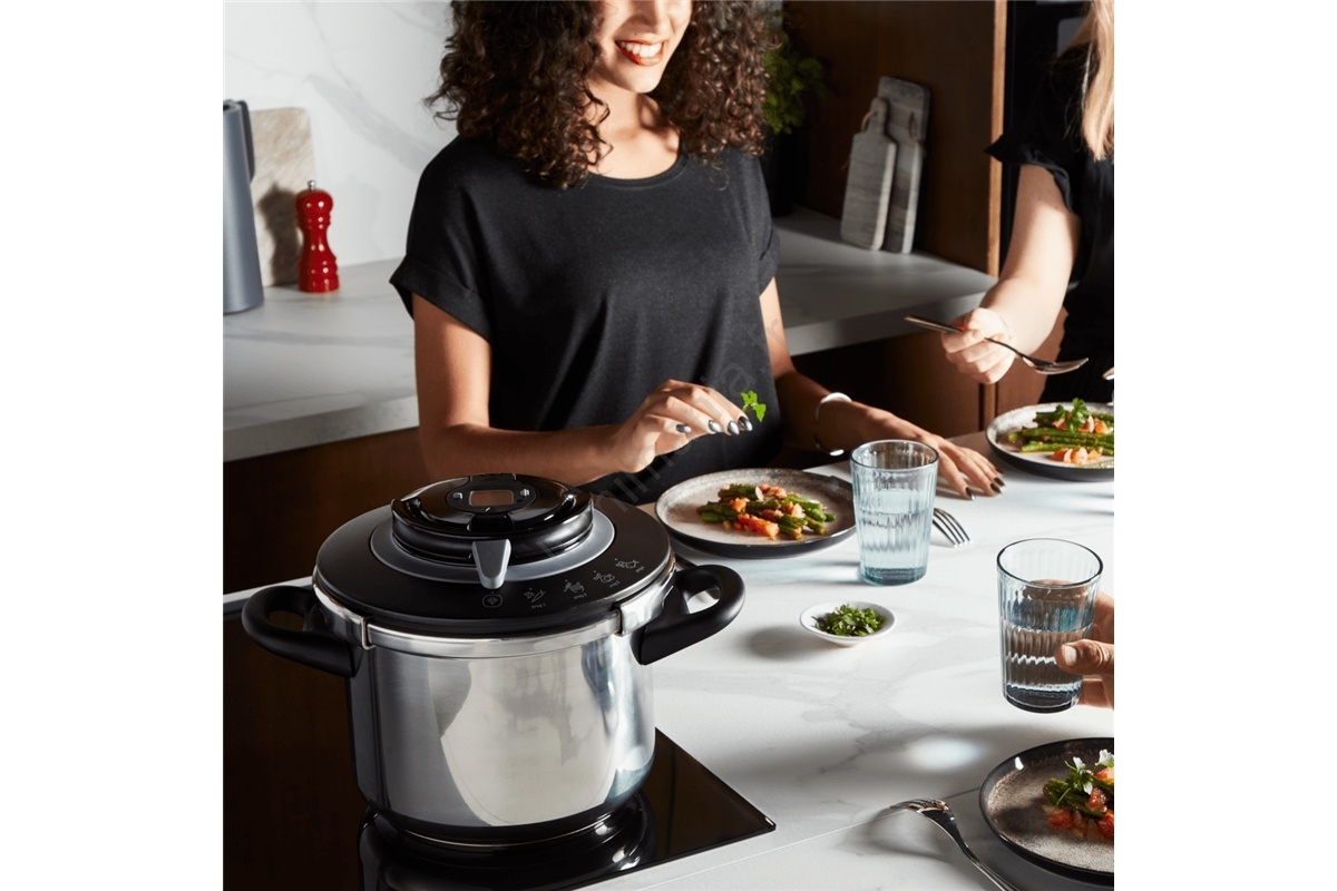 • Permet une cuisson jusqu'à deux fois plus rapide qu'une casserole traditionnelle grâce au mécanisme sous pression.