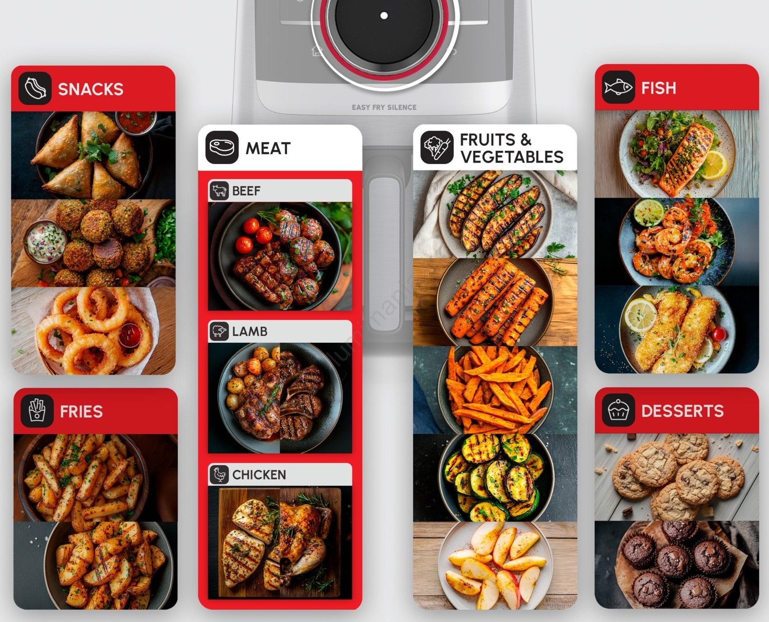 • Large plage de températures 40–220 °C et 11 programmes automatiques (y compris déshydratation et cuisson).