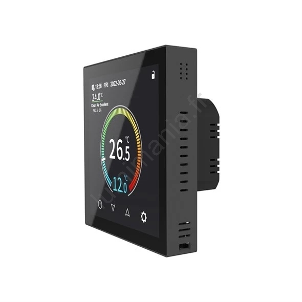 • Thermostat tactile intelligent conçu pour une régulation précise de la température dans les logements, bureaux ou résidences de vacances.