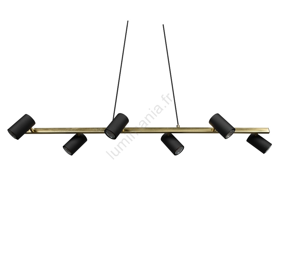 Trio - Suspension sur câble MARLEY 6xGU10/35W/230V noir/doré caractérise un design agréable et fonctionnel.  Une ampoule à culot GU10 convient pour ce luminaire. Ici, vous pouvez acheter d'autres ampoules à des prix avantageux. Vous aurez un ajout intéressant dans votre intérieur.