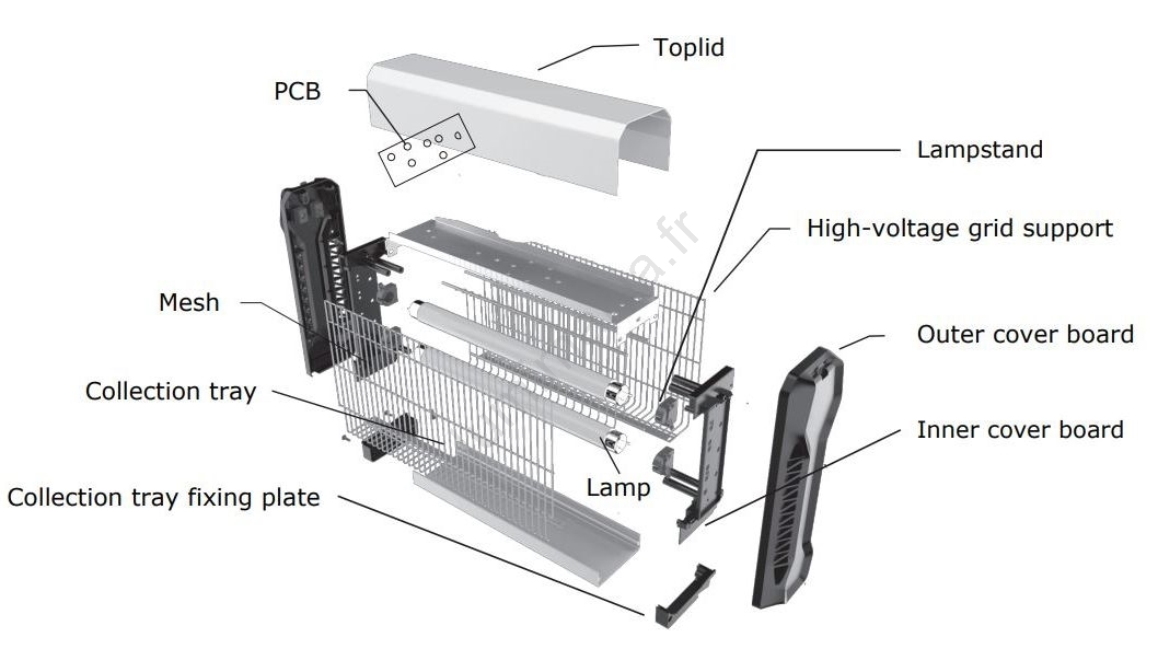 • Bac amovible et lavable pour la collecte des insectes morts.