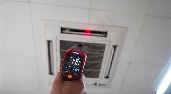 • Le thermomètre utilise deux faisceaux laser qui convergent au point de mesure, assurant un ciblage précis de la température.