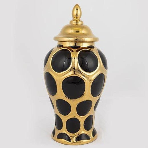 • Le contraste entre le noir et l’or confère à la vase un aspect sophistiqué et opulent.