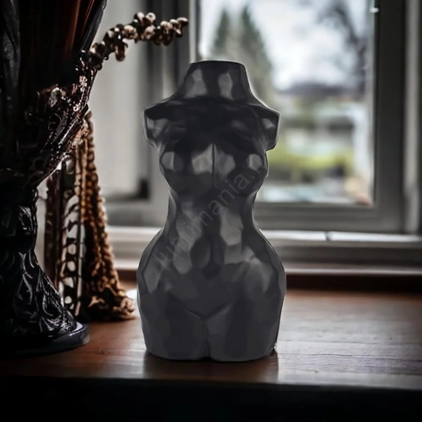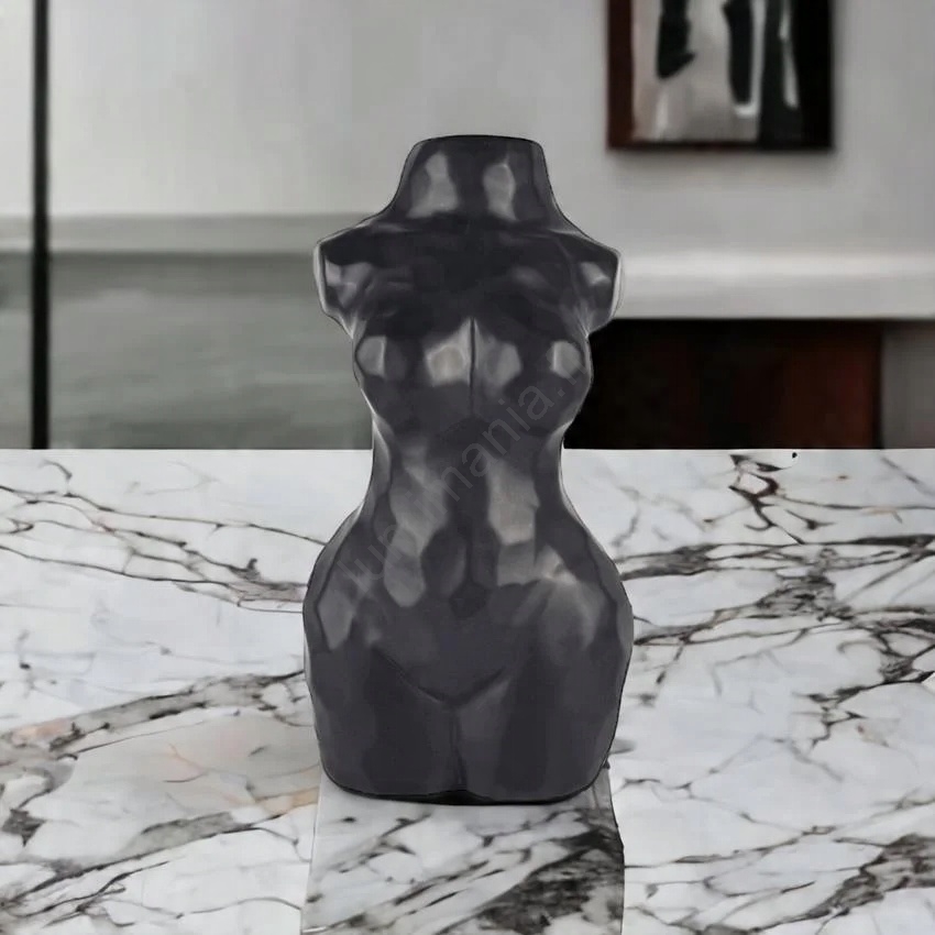 • Vase décoratif pour fleurs en forme de silhouette féminine, finition noire.