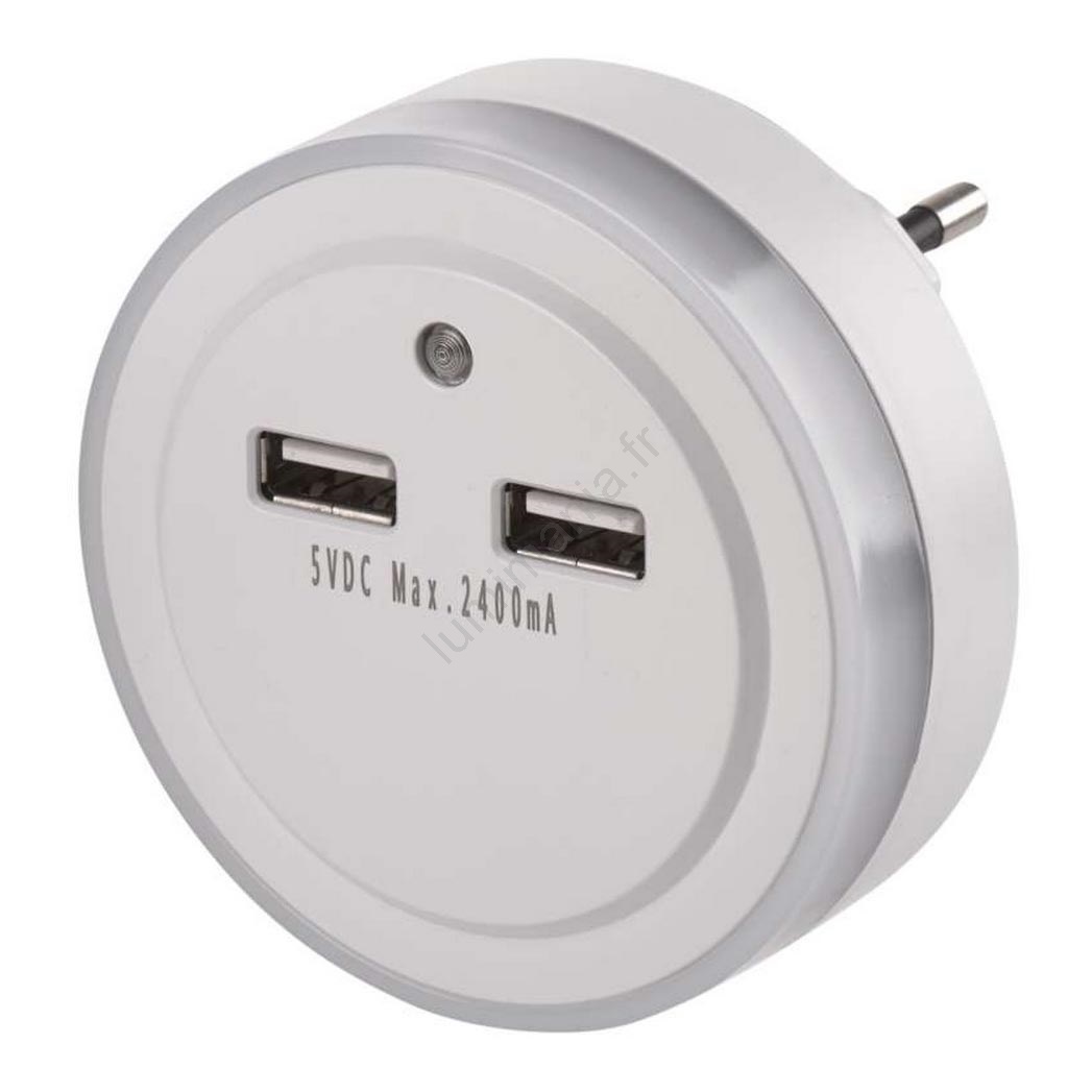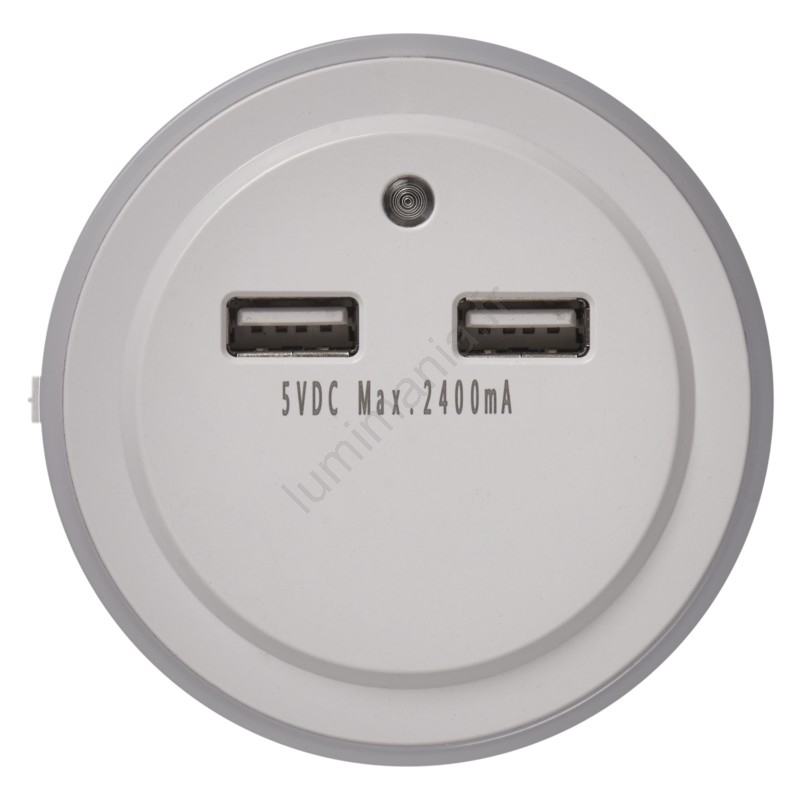 Veilleuse LED à brancher sur prise avec capteur crépusculaire + 2x USB, 3x LED/0,3W/230V
