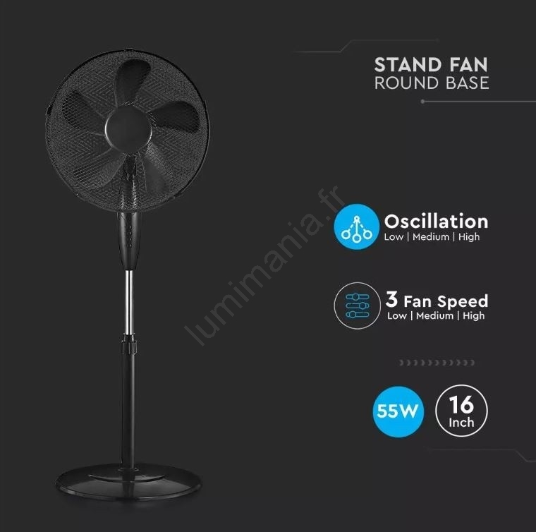 • Ventilateur sur pied avec base ronde.