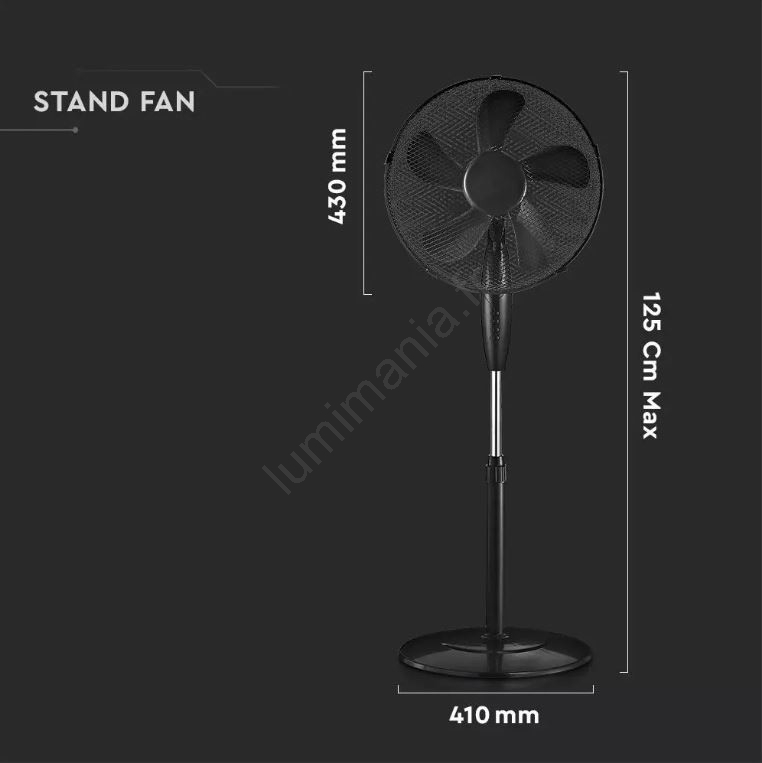 Ventilateur sur pied d. 43cm 55W/230V noir