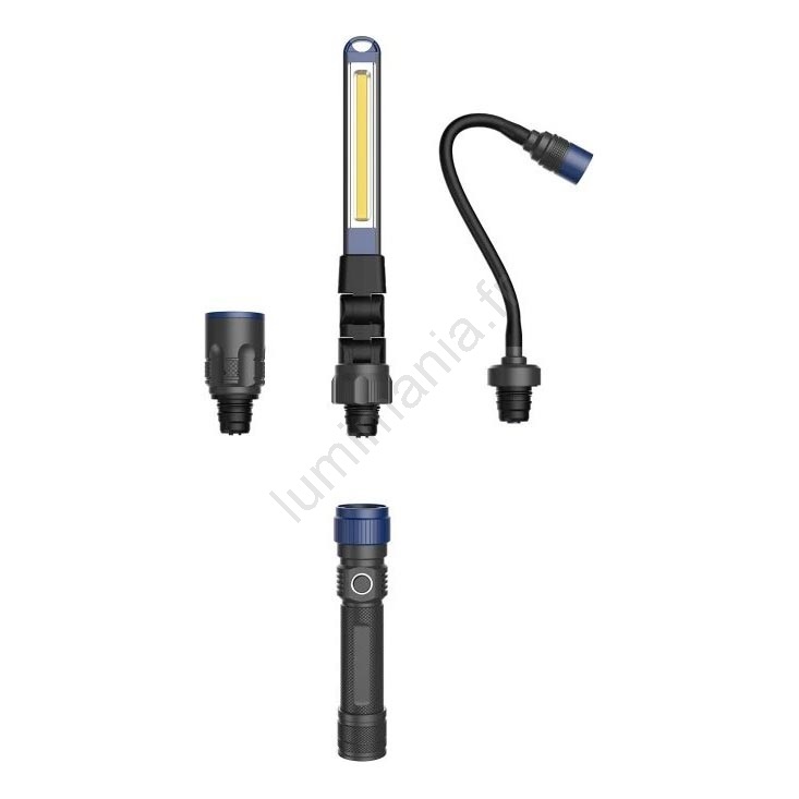 • Elle offre un flux lumineux de 380 lm et trois têtes interchangeables (standard, flexible, bande LED).