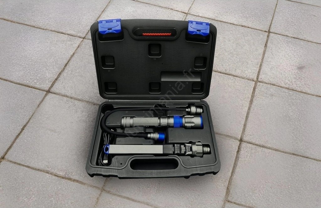 • La lampe et tous les accessoires sont rangés dans une mallette pratique.