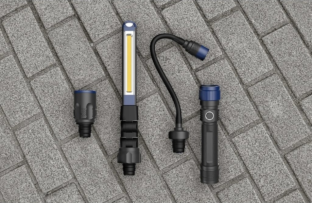 • La lampe de travail 3 en 1 est pratique et fiable, idéale pour l'atelier, la maison ou le chalet.