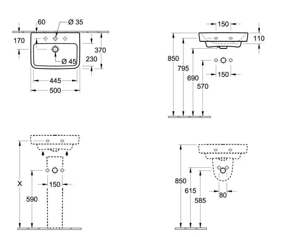 Villeroy & Boch 43445001 - Lavabo suspendu O.NOVO 50x37 cm céramique/blanc